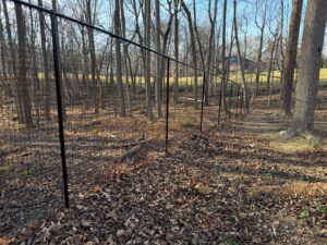 Frederick Fence Co. offers 8’ tall deer fencing in a few different styles. Our as a residential deer fence supplier our first recommendation is a black metal post with plastic mesh option. Deer Busters calls this their Heavy-Duty Deer Mesh Fence solution. This option presents a clean look that can sometimes appear invisible to deer at first. Some clients place flags along the middle of the fence to teach the deer where the fence is, preventing any possible collisions from happening when the fence is first installed. The second option we suggest is woven metal wire attached to 7” round wood posts. This option has more strength than the previous plastic option, though it is significantly more expensive as well. Chain link fencing works well as a deer fence, but some areas like Montgomery County do not recognize this option as “deer fencing.” They will not allow this style to exceed 6.5’ tall in residential areas.