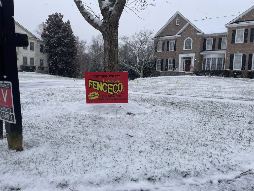 Frederick Fence has over 40 years of experience installing fences in freezing temperatures. We have learned a thing or two through navigating different materials and methods during the winter months each year. We have the experience you can trust, which makes us top choice for your winter fencing needs. Did you just get a puppy for Christmas? Don’t wait, get an estimate right away so you can have your dog fence installed in January or February. Want a fence before spring and it’s already winter? We’ve got you covered!