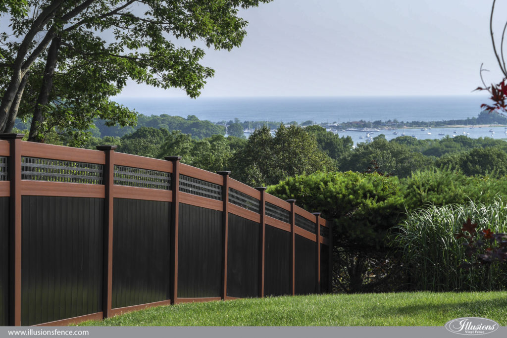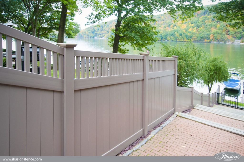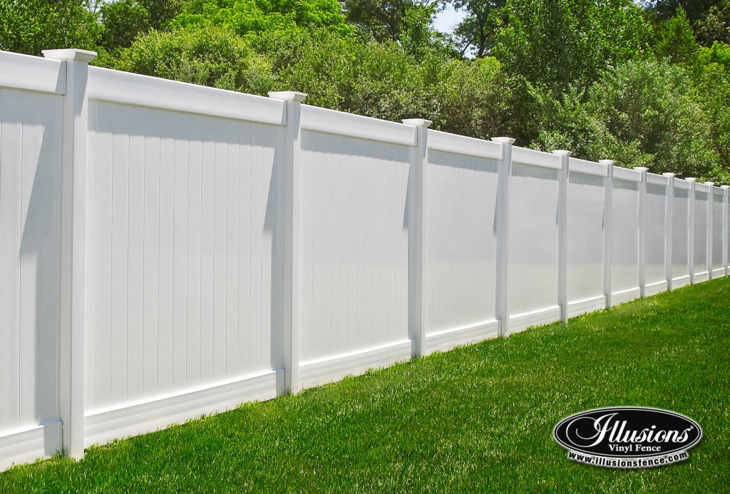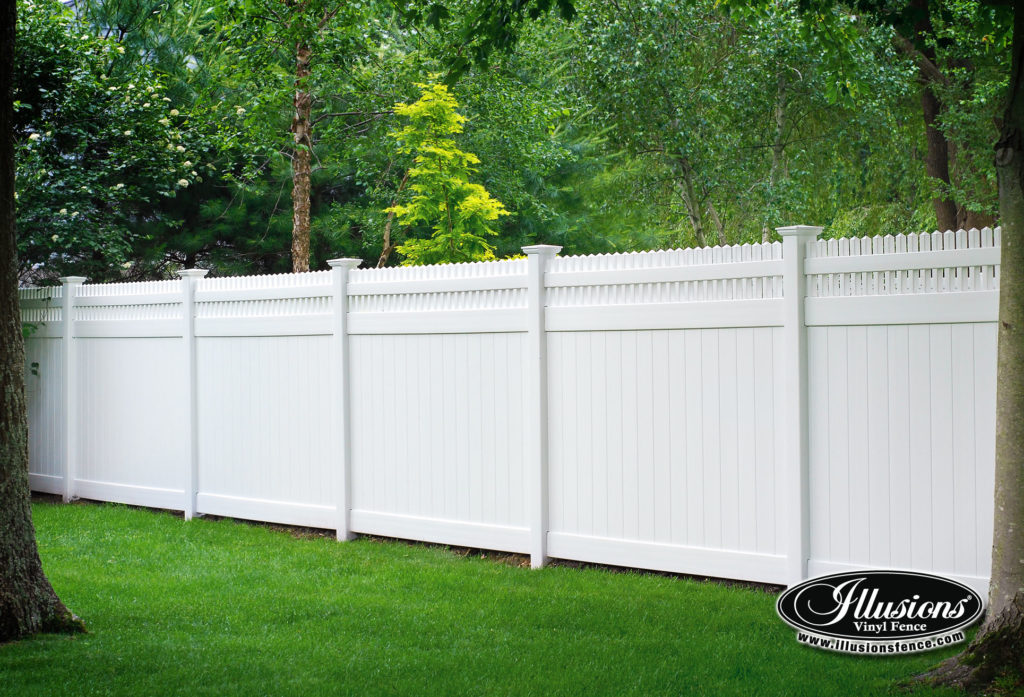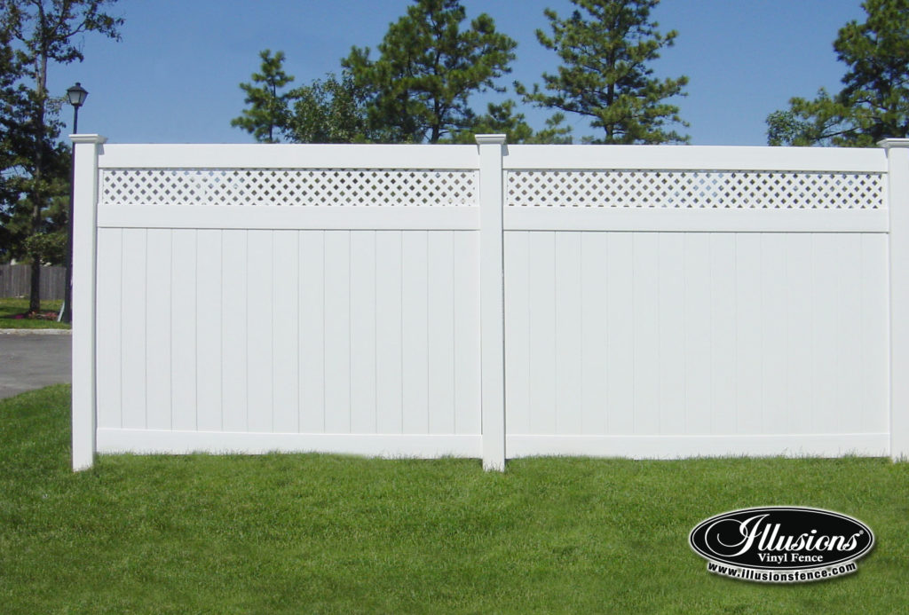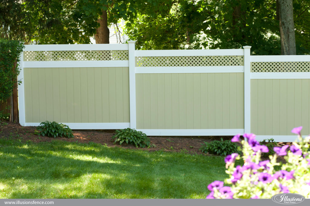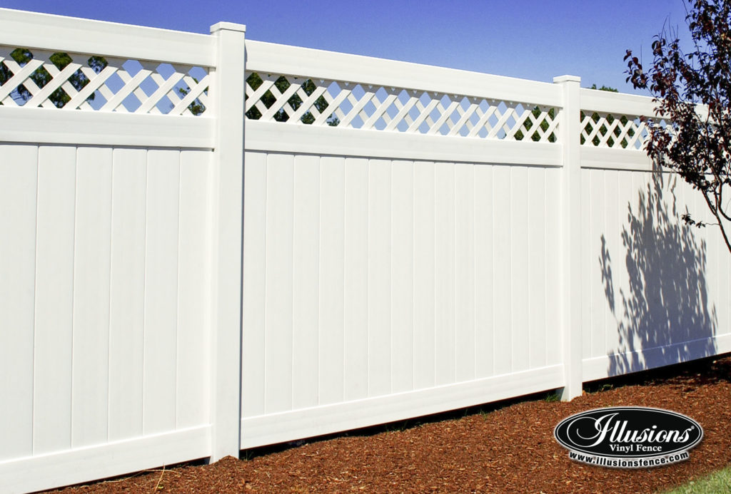 Vinyl privacy & semi-privacy fencing offers good screening from neighboring properties but still allows light and air through the boards of the fence. If you want privacy, no maintenance and the most durable fence for creating your outdoor oasis, then a vinyl privacy fence is the best way to go. You can also add decorative lattice work to this fence as well.