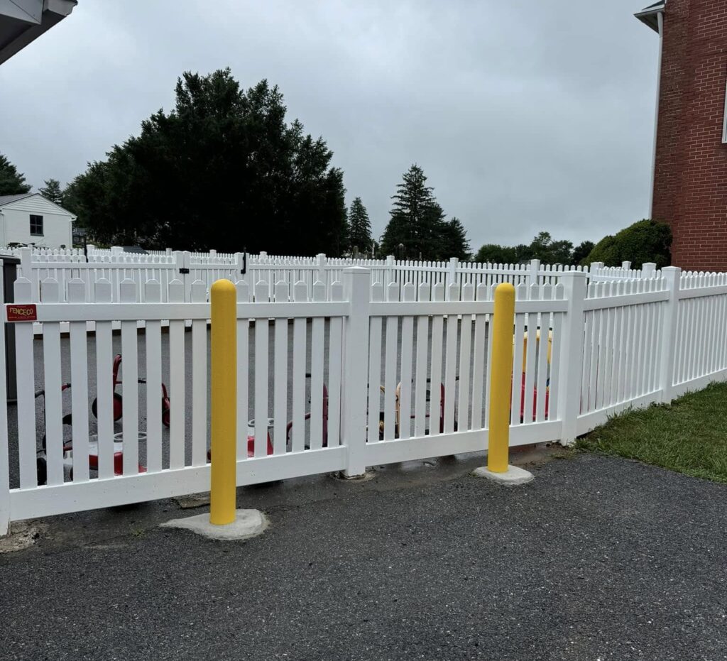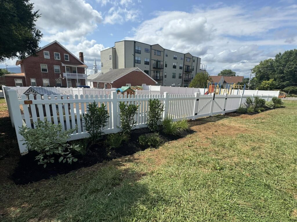 If privacy is desired along with security we have vinyl and composite options to serve that purpose. These fences deter climbing and offer complete privacy from outer surroundings. Frederick Fence has experience installing privacy fences for playgrounds and nursery schools. These fences also make great long lasting solutions for dumpster and utility enclosures. The two first photos below feature a fence we installed for a church playground in Middletown, MD. Our customer was pleased enough to share their experience with our company as well as the photos they took of the completed work.