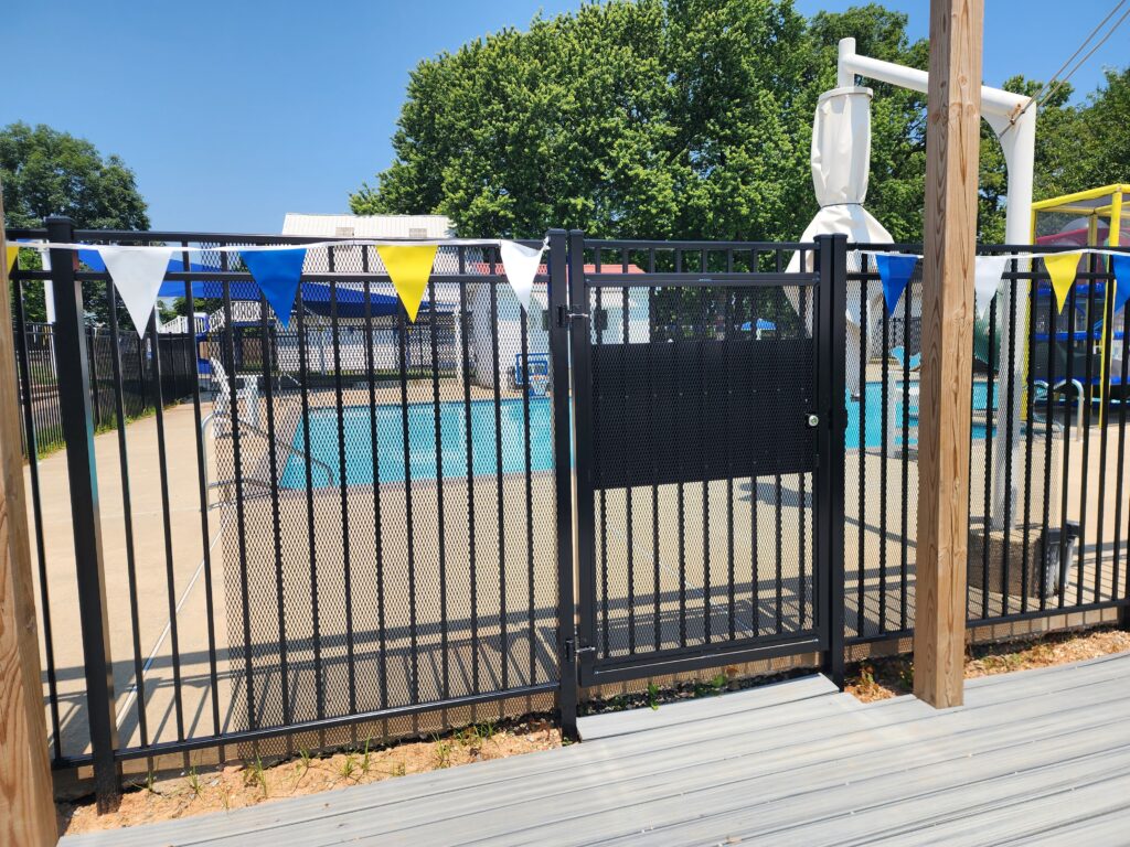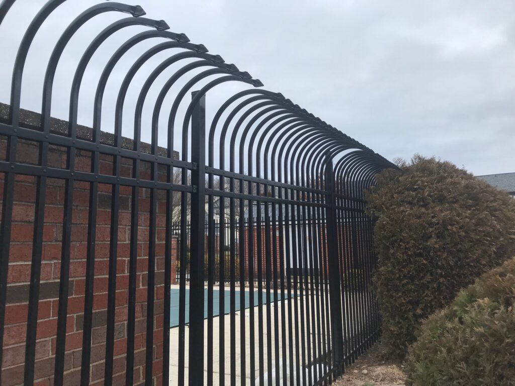Aluminum or steel fencing options are terrific for most commercial business property needs. These fences are virtually unclimbable with the added bonus of having a more aesthetic look than chain link. Frederick Fence installs aluminum and steel security fences for community pools, entire development perimeters, cemeteries, and much more. One of our recent featured installations was for a summer camp’s two locations in the Montgomery County and Frederick County areas (first photo below). Justin Lambert assisted in the design of these extensive fence replacement projects around pools and sports court areas. The result was a long lasting, aesthetic, and secure fence that they can enjoy for many years to come.